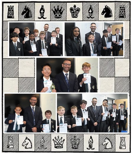 26 pupils from all year groups entered the tournament and games became more competitive as the weeks passed by, as they were playing a similar standard opponent. By round 5 there were only 2 players who hadn’t dropped a point, so a vital match was played between Muxuan Chen (8C) and Oliver Cooper (7N) with Muxuan winning the closely fought contest.
