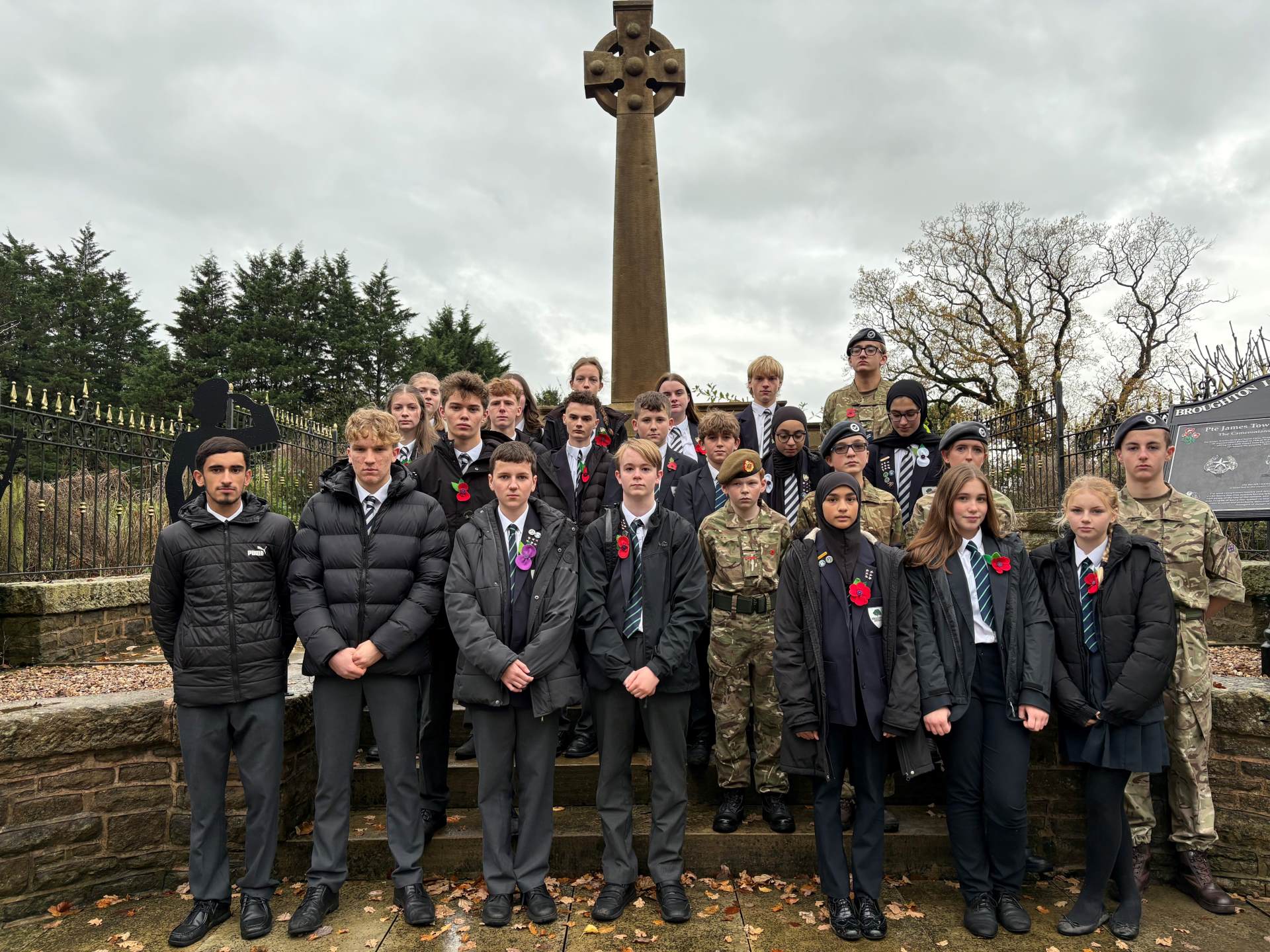 On Tuesday11th November, we held two minutes of silence in school at 11.00am to commemorate Remembrance Day followed by the ‘The Last Post’. I was accompanied by our Head Boy, Head Girl, their Deputies and some of our pupils at the Cenotaph in Broughton. We laid a wreath at the memorial on behalf of the school and Mr Shepherd played ‘The Last Post’. Jayden Rogerson (8C) produced the lovely artwork shown below for remembrance day,
