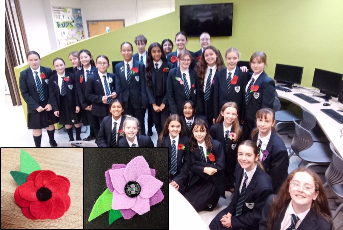 Finally, you will see many red poppies, which is are the most traditional symbol used to commemorate those who sacrificed their lives in World War One and conflicts that followed. The Sewing Bee made poppies for pupils from Years 8, 9, 10 & 11 who represented our school at the cenotaph on Remembrance Day.