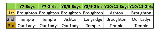 There were some absolutely fantastic performances from the Broughton pupils on Wednesday 8th October, with several top ten finishers in each age group. Broughton won overall, having won every age group apart from the Year 10 and 11 boys, where we finished in 2nd place. All the pupils who represented Broughton did so with determination and resilience, and they were an absolute credit to the school. A huge well done to every pupil!